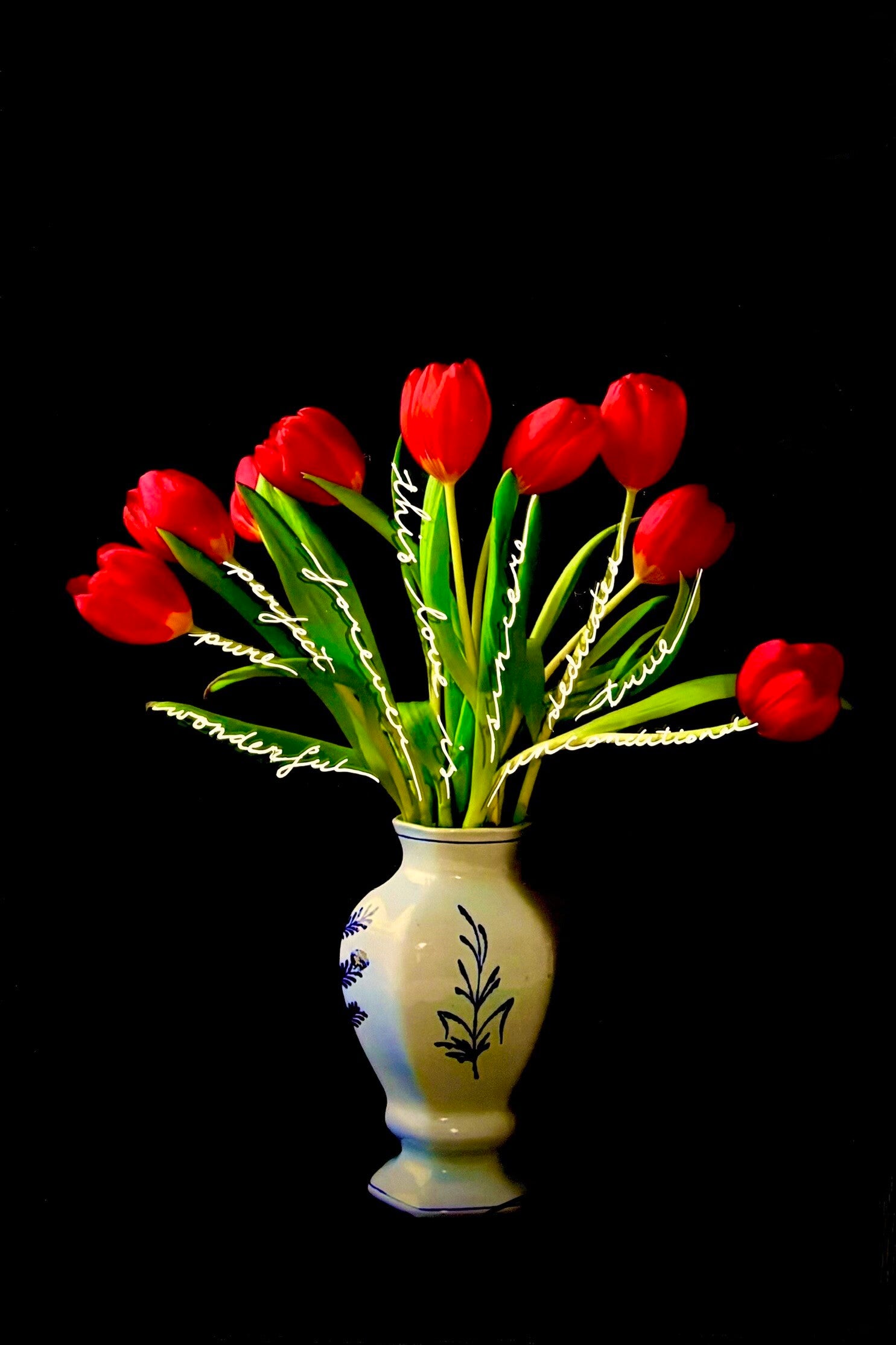 Of je nu op zoek bent een werk dat de sfeer in jouw huis versterkt, jouw familie portretteert, of juist een blijvende herinnering aan iemand die je mist, bij elk verhaal zijn passende woorden, kleuren en bloemen te vinden. Deze unieke combinatie geeft elk werk een sterkt uitstraling afgestemd op jouw persoonlijke wensen